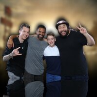 Nous lui proposons une photo de groupe avec Khary Payton — une idée qu’il accepte immédiatement, avec son grand sourire habituel.