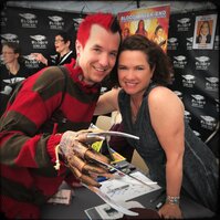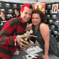 Ce jour-là, je profite pleinement de sa présence. Nous discutons longuement de Freddy, de ma rencontre avec Robert Englund, puis du Basel Fantasy — événement qu’elle aimerait véritablement découvrir. Une conversation simple, chaleureuse et passionnée, qui laisse imaginer une seconde rencontre… peut-être un jour, là-bas.
