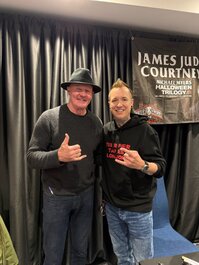 La rencontre avec James Jude Courtney s’est déroulée à Londres, lors de la Silver Screen Convention, le week-end des 13 et 14 décembre 2025. J’ai pris le temps d’échanger longuement avec lui autour de son travail sur Michael Myers. Il a signé mon tatouage, réalisé lors de la sortie du premier film de la dernière trilogie, ainsi que son masque, et nous avons fait plusieurs photos.