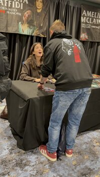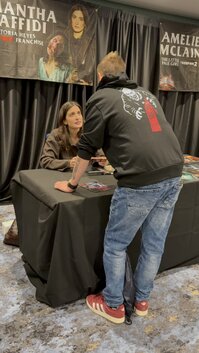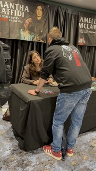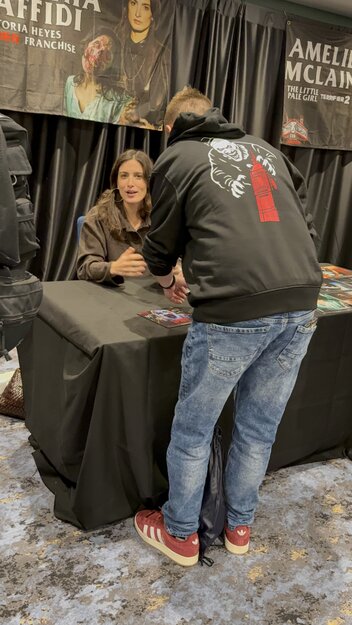Rencontre avec Samantha Scaffidi le 13 décembre 2025 à Londres, actrice connue pour son rôle de Victoria Heyes dans la saga Terrifier 🎬🩸